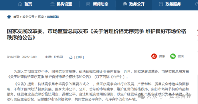 為深入貫徹落實(shí)黨中央、國(guó)務(wù)院決策部署,依法依規(guī)治理企業(yè)無(wú)序競(jìng)爭(zhēng),近日,國(guó)家發(fā)展改革委、市場(chǎng)監(jiān)管總局發(fā)布《關(guān)于治理價(jià)格無(wú)序競(jìng)爭(zhēng) 維護(hù)良好市場(chǎng)價(jià)格秩序的公告》?!豆妗诽岢?,價(jià)格競(jìng)爭(zhēng)是市場(chǎng)競(jìng)爭(zhēng)的重要方式之一,但無(wú)序競(jìng)爭(zhēng)會(huì)對(duì)行業(yè)發(fā)展、產(chǎn)品創(chuàng)新、質(zhì)量安全等造成負(fù)面影響,不利于國(guó)民經(jīng)濟(jì)健康發(fā)展。國(guó)家支持公平、公開、合法的市場(chǎng)競(jìng)爭(zhēng),維護(hù)正常的價(jià)格秩序。